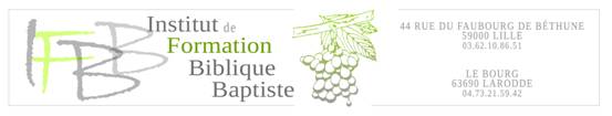L’IFBB est membre de l’Alliance Baptiste de France et souscrit à sa confession de foi dont voici l’essentiel : Nous croyons à l’inspiration plénière et verbale de la Bible, autorité souveraine et finale pour la foi et la pratique. Nous croyons en la Trinité : Père, Fils et Saint-Esprit. Nous croyons à la naissance miraculeuse et virginale de Christ, vrai homme et vrai Dieu, à sa mort, sa résurrection et son ascension auprès de Dieu où il exerce son ministère d’intercesseur et d’avocat. Nous croyons que l’homme, créé à l’image de Dieu, a chuté. Il est devenu pécheur par nature : mort spirituellement et déchu. Nous croyons que Christ est mort pour tous les pécheurs. Dieu offre la possibilité à tout homme de croire en son sacrifice, d’être ainsi justifié et de devenir une nouvelle création par le Saint-Esprit. Nous croyons à la sécurité éternelle du croyant. Nous croyons au retour personnel et imminent de Christ qui revient chercher son Eglise avant la Tribulation et le Millénium. Nous croyons à l’accomplissement littéral de toutes les prophéties concernant Israël, notamment la régénération future et la restauration nationale. Nous croyons à la résurrection corporelle des justes pour la félicité éternelle et des perdus pour le châtiment éternel. Nous croyons aux deux ordonnances : le baptême par immersion et la Cène, qui n’ajoutent rien au salut. Nous croyons aux dons de l’Esprit distribués selon Sa volonté, mais nous croyons que le parler en langues, l’interprétation, la prophétie et la guérison par imposition des mains, sont abolis. |